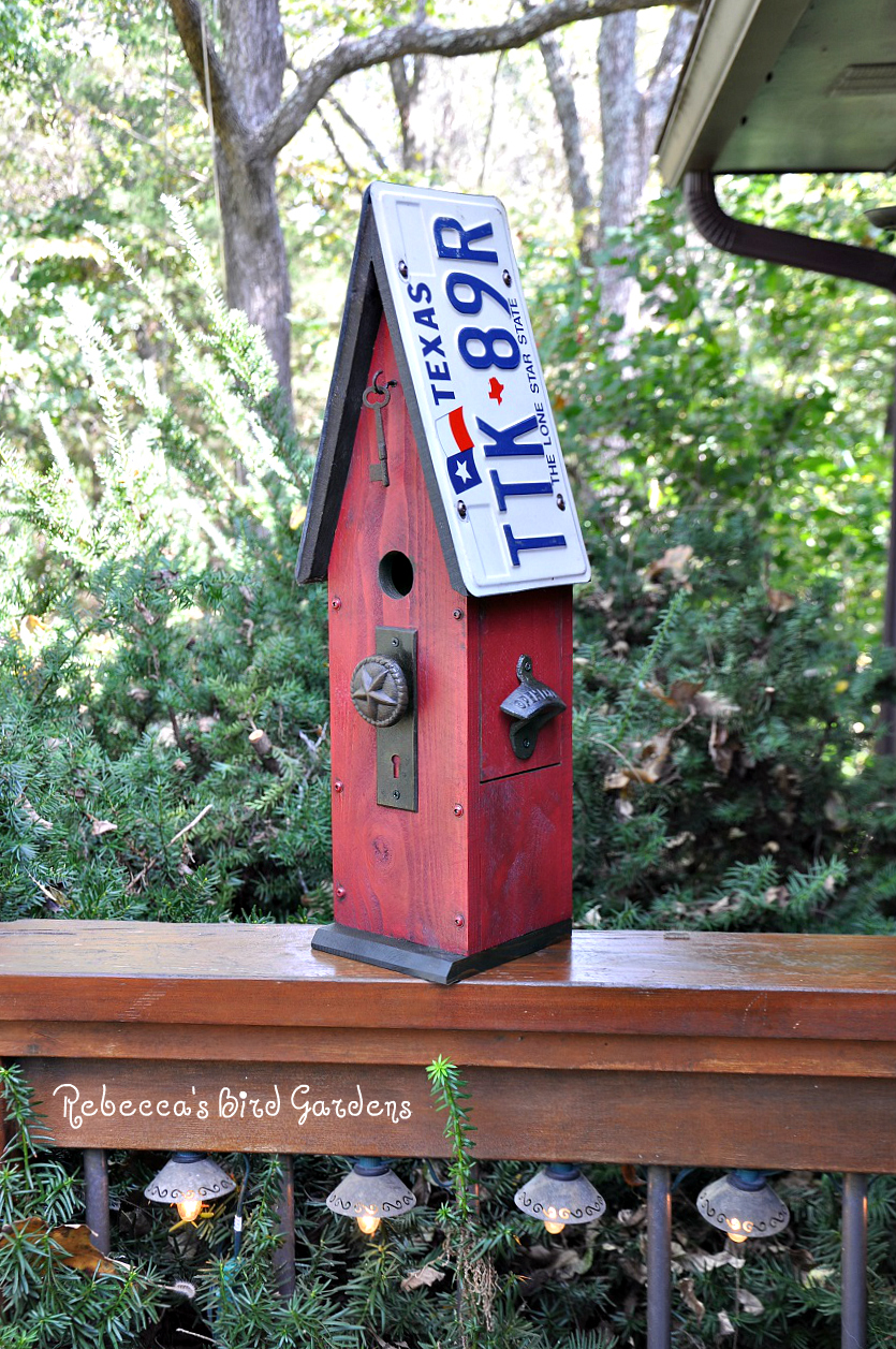 Custom "Texas" themed birdhouse. I think the license plates were the perfect touch! ♥