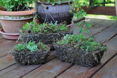 Preparing for a class on vertical gardens... I was surprised at how well this "Pallet Project" turned out! One is full of salad crops - lettuce, spinach, kale - and topped off with a compact basil variety. The smaller pallet is planted with winter hardy sedums.